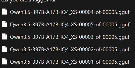 >>108233147>koboldcppIt's 25 gb. I'm already downloading qwen3.5 why should I switch to that one?