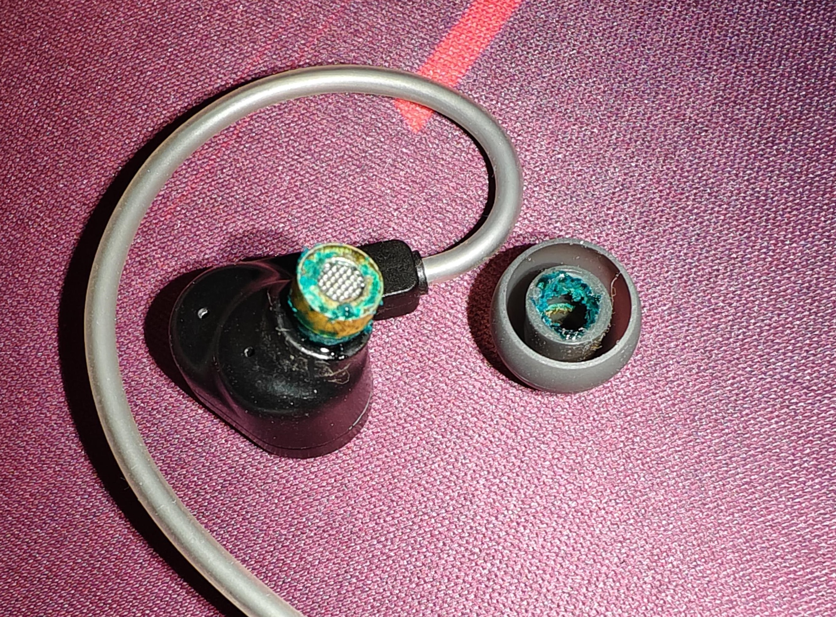 Moondrop shitter here. Been using Chu 2 for around two years or so. I clean them every month, and every time I take the tips off, their inside is covered in green-blue-ish coating. Same goes for the metallic tip of the IEMs themselves. Probably something related to lead/copper oxidation, but is this safe? I'm putting this green goo inside of my ears basically every day. Am I going to die?