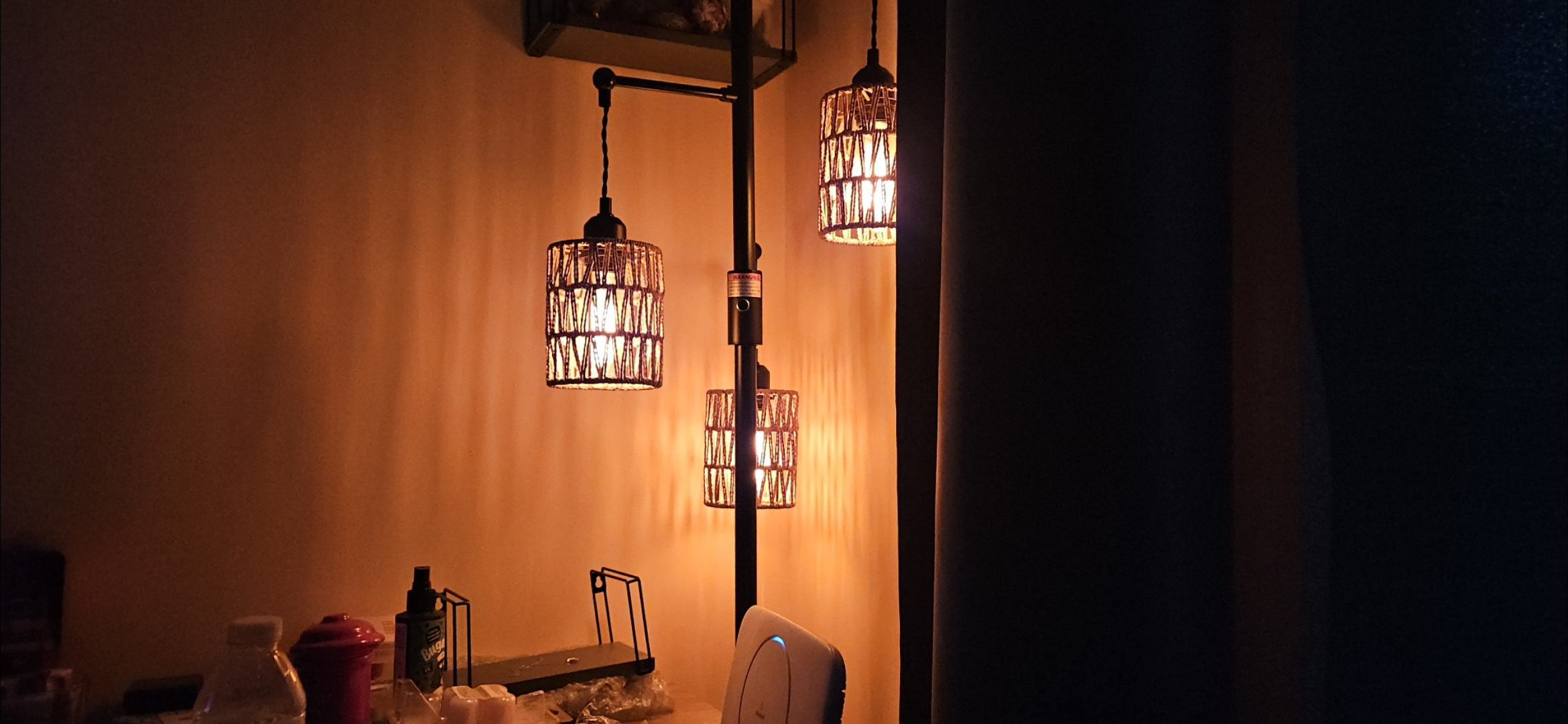 get a lamp with like 4 bulb positions and put a red led bulb in one, it would make way more sense than what you are sugesting