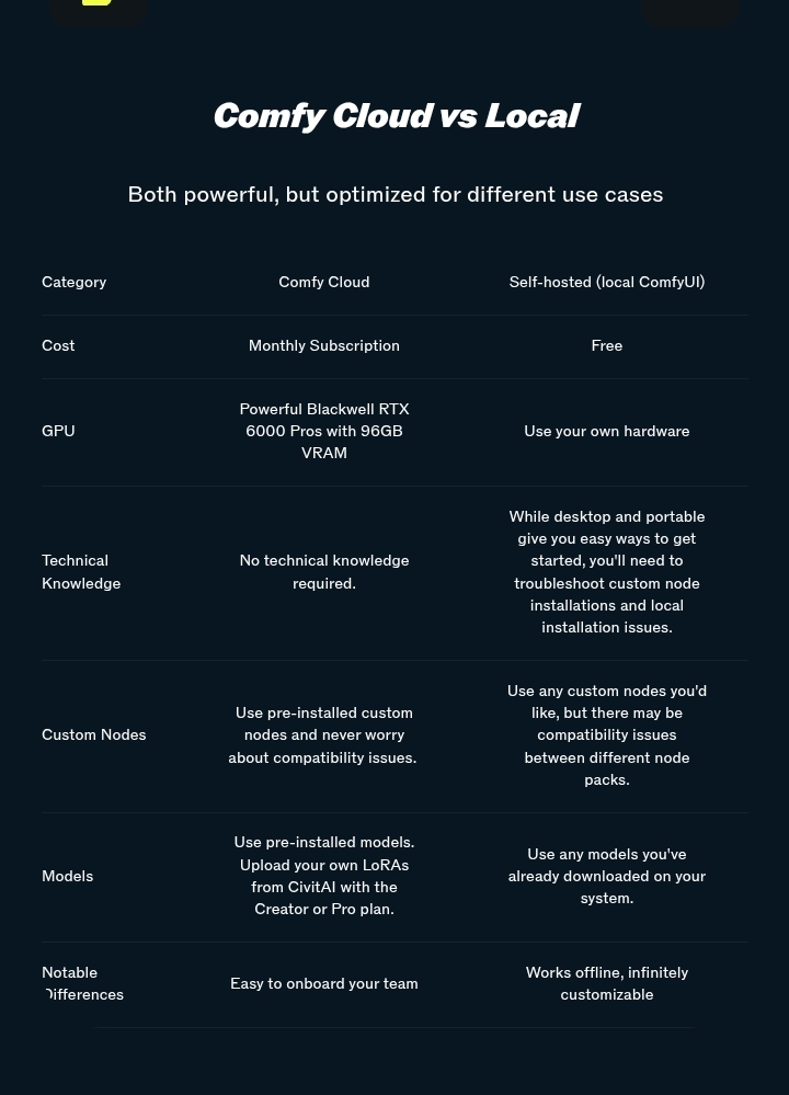 >>108240852>While desktop and portable give you easy ways to get started, you'll need to troubleshoot custom node installations and local installation issues.>Use any custom nodes you'd like, but there may be compatibility issues between different node packs.Daily reminder that Comfy makes the user experience in the UI as shit as possible to poach you into ComfyCloud