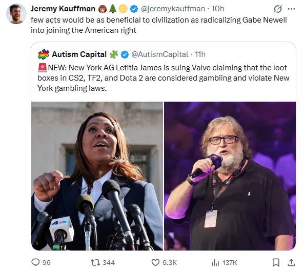 >>108253334Can you imagine? Suing Gabe? That's like suing Santa Claus. Is nothing sacred to these people?