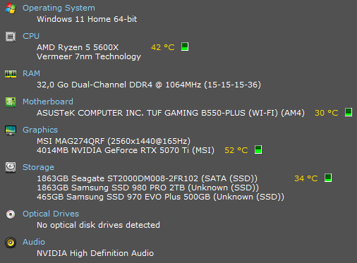 >took 2 hours to install 5070 ti, check PSU and fix black screen>"Damn, reset BIOS? Cmos reset? Drivers issue despite DDU install?">Just forgot to plug back one of these 8 blocs PCIE cable into the PSU...>Finally doneI know, I know... I'll upgrade that CPU once prices are better. Here's some questions tho :1) Motherboard + CPU + Ram bundle possible around Black Friday?2) What are the best settings for RTX series 50xx?3) AI bros, how does 5070ti perform for img2vid?4) Is it worth to upgrade from 750w to 1000w PSU?5) Am I grieving by using speccy instead of HWinfo?So far, I did some progress in PC building but there is still that final challenge : Change Motherboard and update BIOS. Not sure I'm ready for that one...