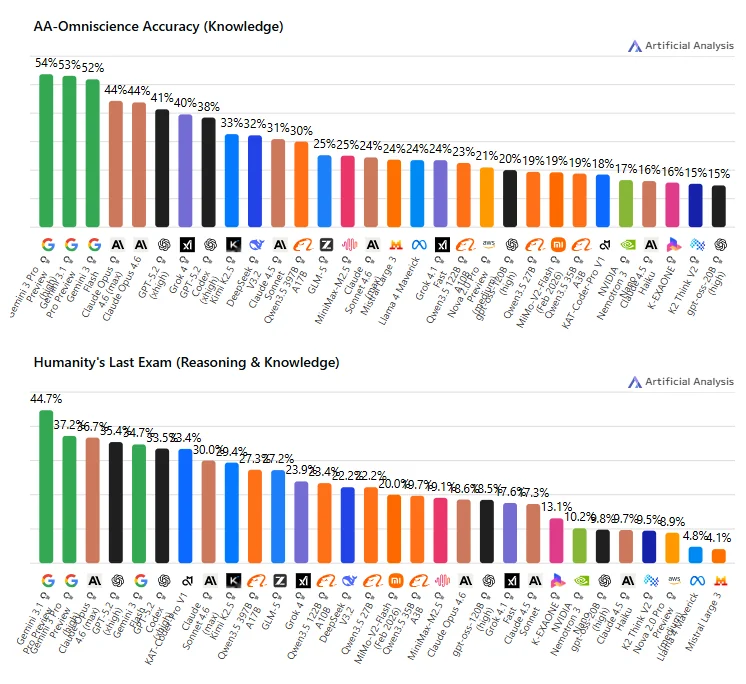 >>108248187It literally says 19% for both models. And even the knowledge-only benchmark likely does not do a perfect job of separating reasoning from pure factual knowledge, so the superior reasoning capability of dense 27B gives it enough of a boost to match 35B on the benchmark. Anyway, this shit doesn't even give you confidence interval, it's garbage.