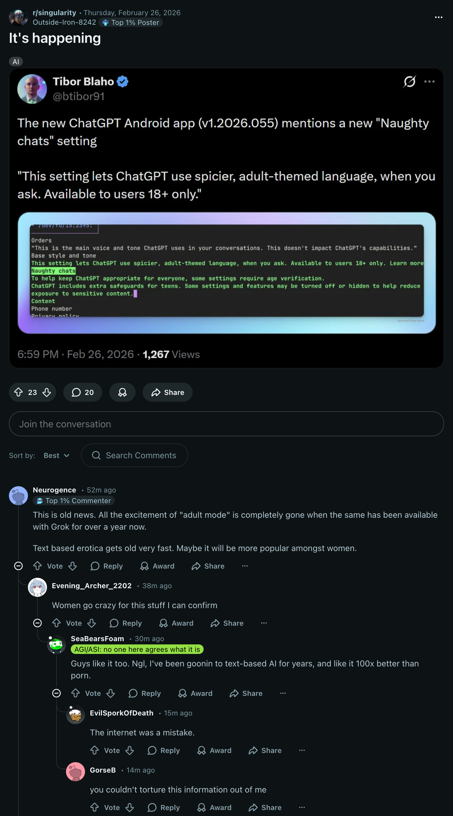 >>108248689it's not actually about prudery in Altman's case, it's pants-pissing fear of journalists and how they might write articles for normies going "Look at this sick shit GPT generated"Without that concern he would be happy to making money selling AI porn to everyone
