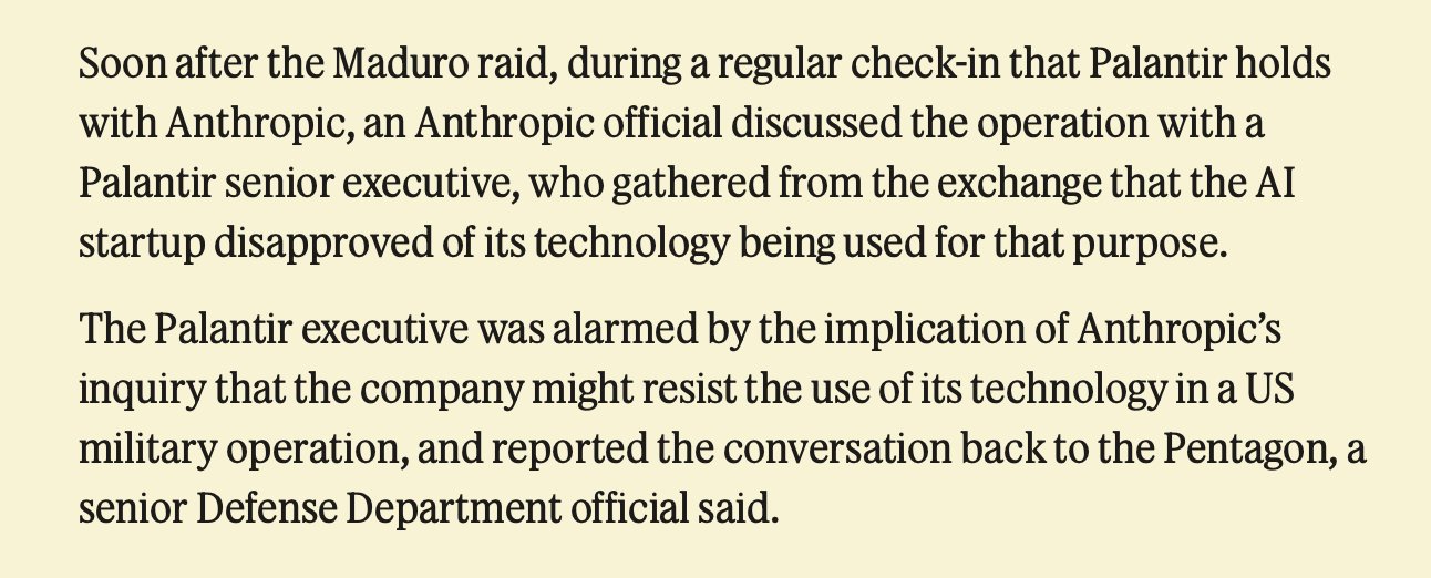 >>108258003Lies and more lies.the contract with the DoD was for claude to streamline tasks done within the military, not surveillance.The government clearly just wanted to pivot to outright use claude (because its a really good model) for absolute general surveillance, which clearly anthropic objects to.Weird how you dont.>when it was actively feeding information to Palantiryou mean when palantir put claude onto its servers for use with the military? Because Anthropic didnt have secure level access that would be required to be offered service by an already militarily aligned IT AI service?Any other pro-government defense you got that I can promptly BTFO, John Doe?this was too easy
