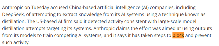 >>108258204Except..... they were successful??Anthropic wouldnt be complaining otherwise?Is this bait or are you actually this retarded?