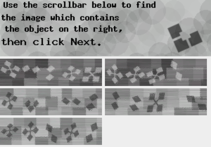 >>108253938>They probably can solve this captcha in a year or two.This type of captcha is trivial to bypass. It is much more simple than the 1 out of three is different. You just need to align instead of compare.