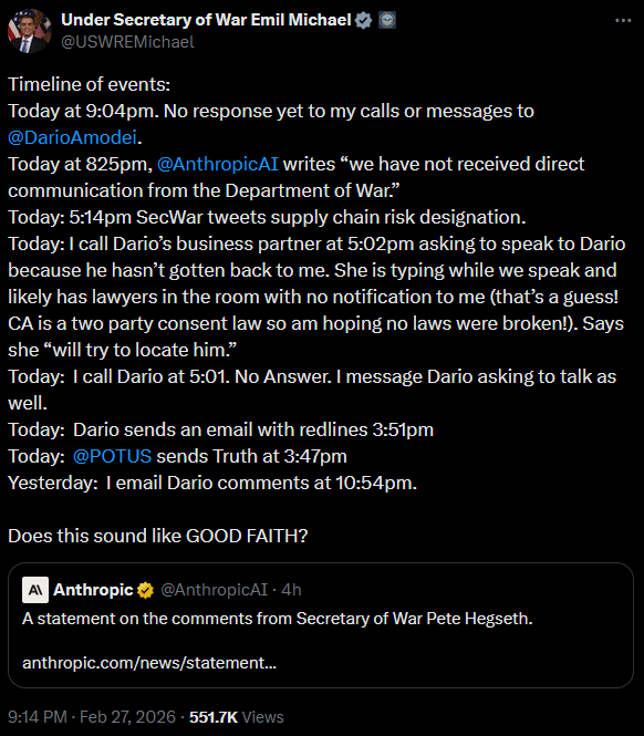 Anthropic cuckies could have used the money and resources from the US govt to get ahead of the competition and dictate the future of AI but they decided they wanted to change things now and piss off the US govt so now they're getting banned from the US market completely.