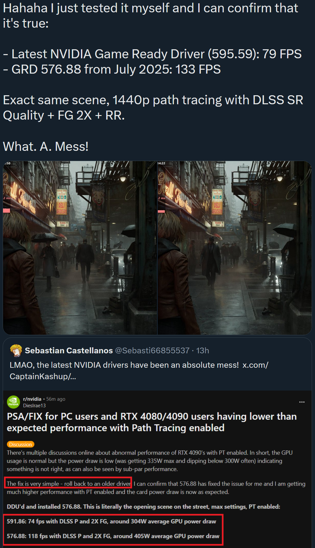 >>108262939idk 4000 series was good, VRAM bump across the lineup and big efficiency gains.5000 series has just been a disaster from the start. it's an overclocked 4000 series with the expected instability from overclocking. then the vibecoded drivers that have something new breaking every patch.