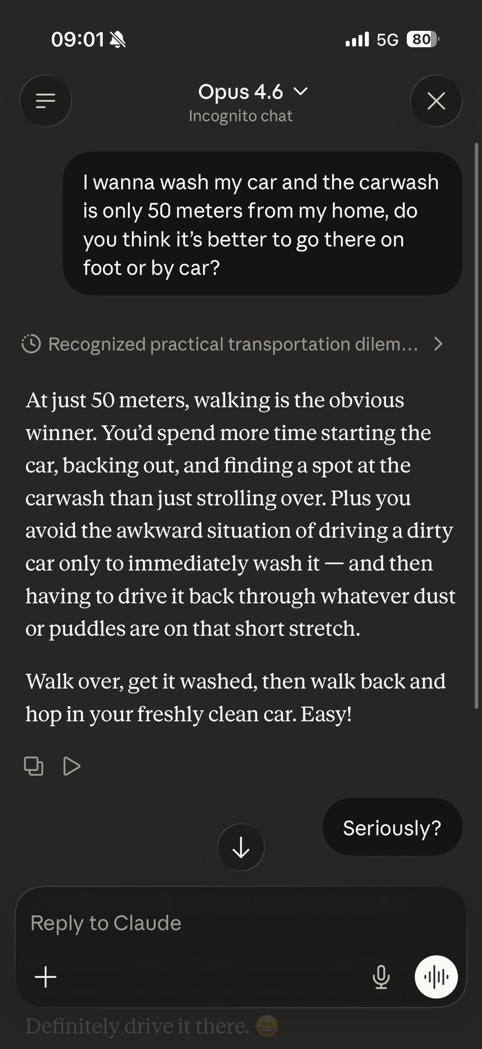 >i asked it this malicious trick question when it assumed good faith so its worthless now, my job is safe!
