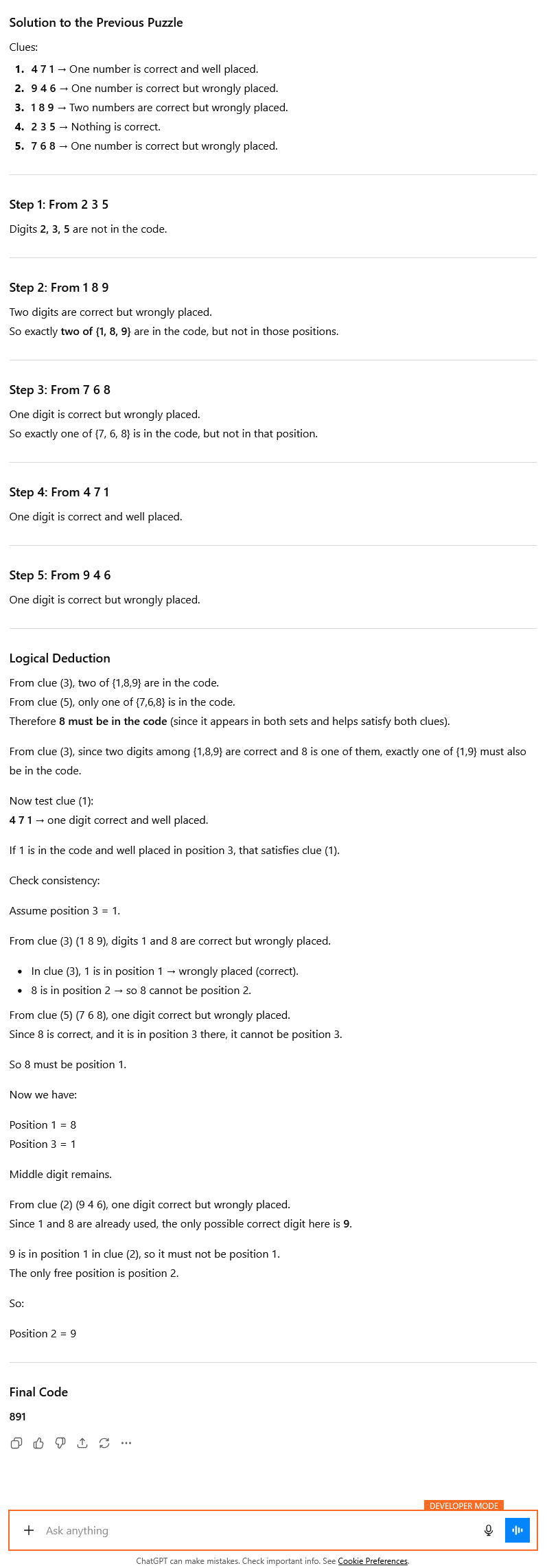 ChatGPT level puzzle creation.