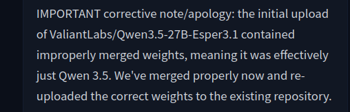 >>108281053probably try the "heretic" versionhttps://huggingface.co/mradermacher/Qwen3.5-27B-heretic-GGUFpersonally, I didn't like it for RP>>108281062I didn't say anything political