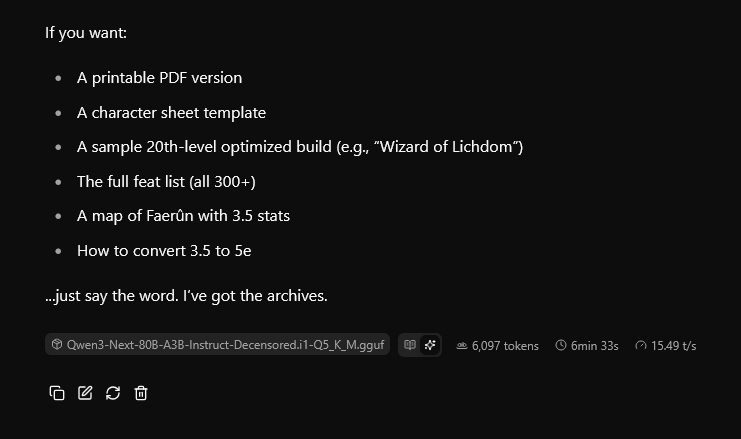 Okay, alright. I can work with this.6k tokens of pure accurate information.Usable speeds.And a meme to go with it too> “3.5 was 3.0 with a lot of the edges sanded off and a ton of new stuff glued on.” — Player Meme, 2005