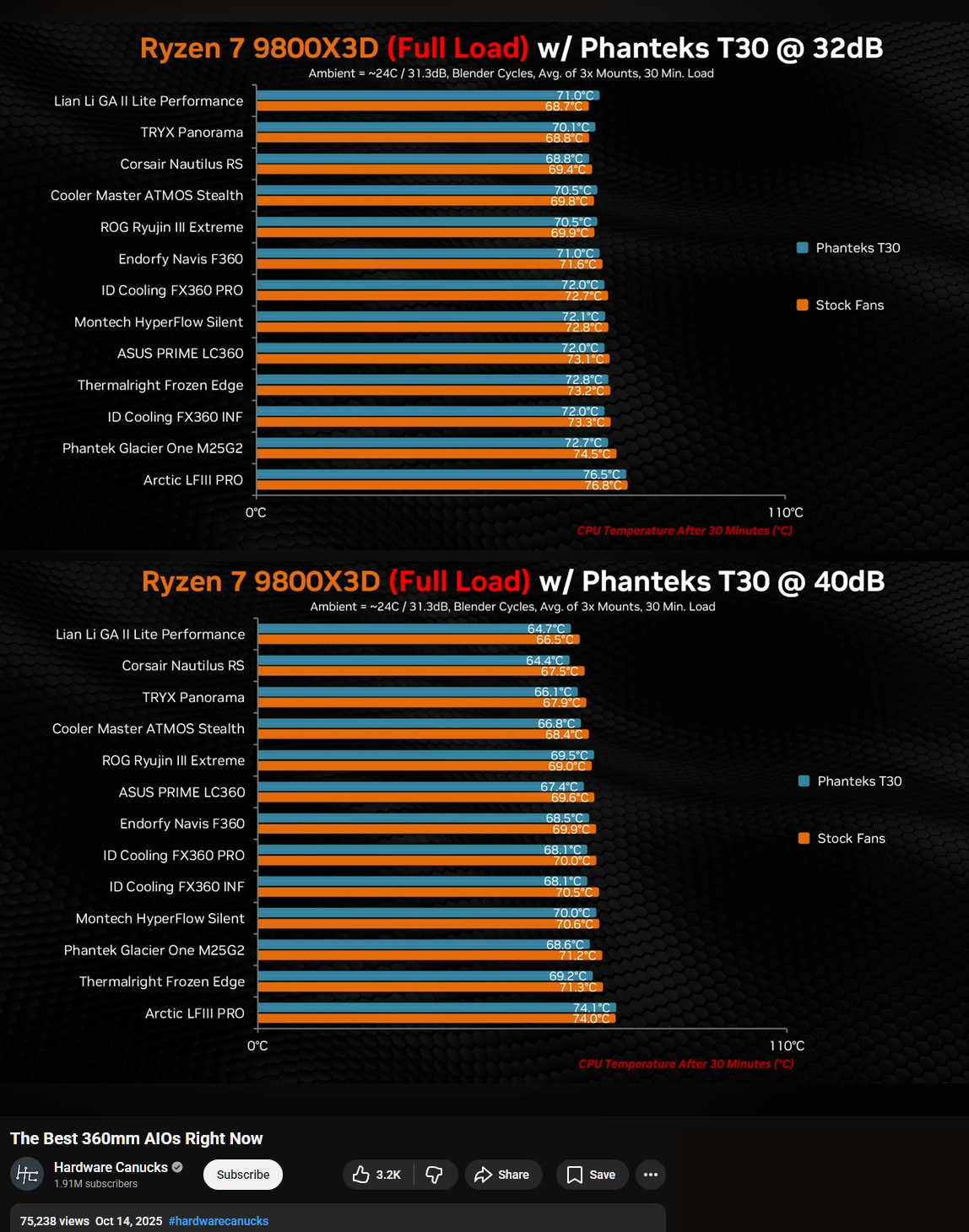 >>108281216You keep the pump speed constant at around 2000~2200 RPM (the lower the quieter), and my CPU only hits above 80°C under stress test loads.That 9850X3D can easily handle 80°C loads; its stock thermal throttle starts at 95°C.