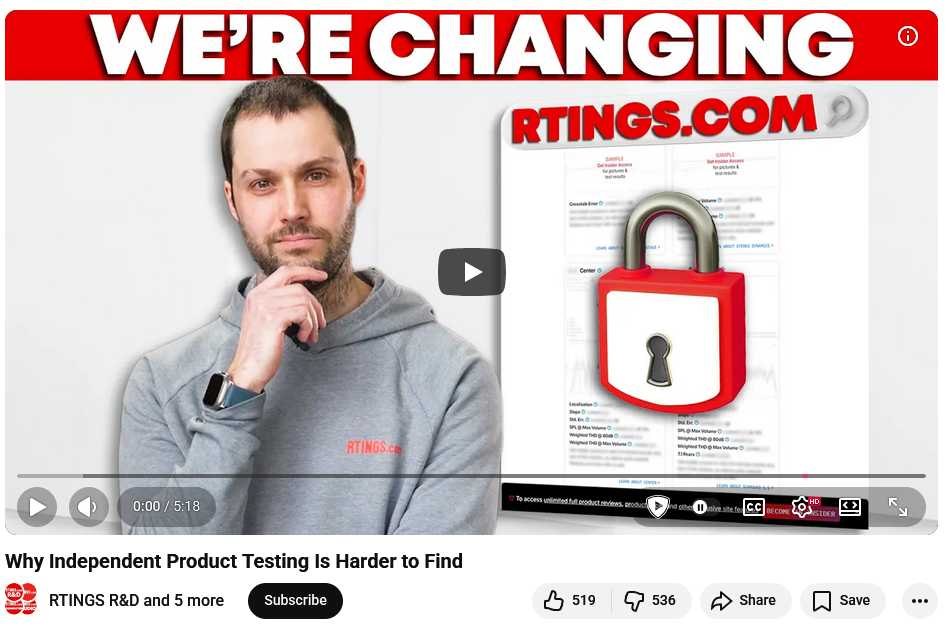 RTINGS is paywalling all of their hardware reviews to subscribers-only.https://www.rtings.com/company/revamping-our-membership-program