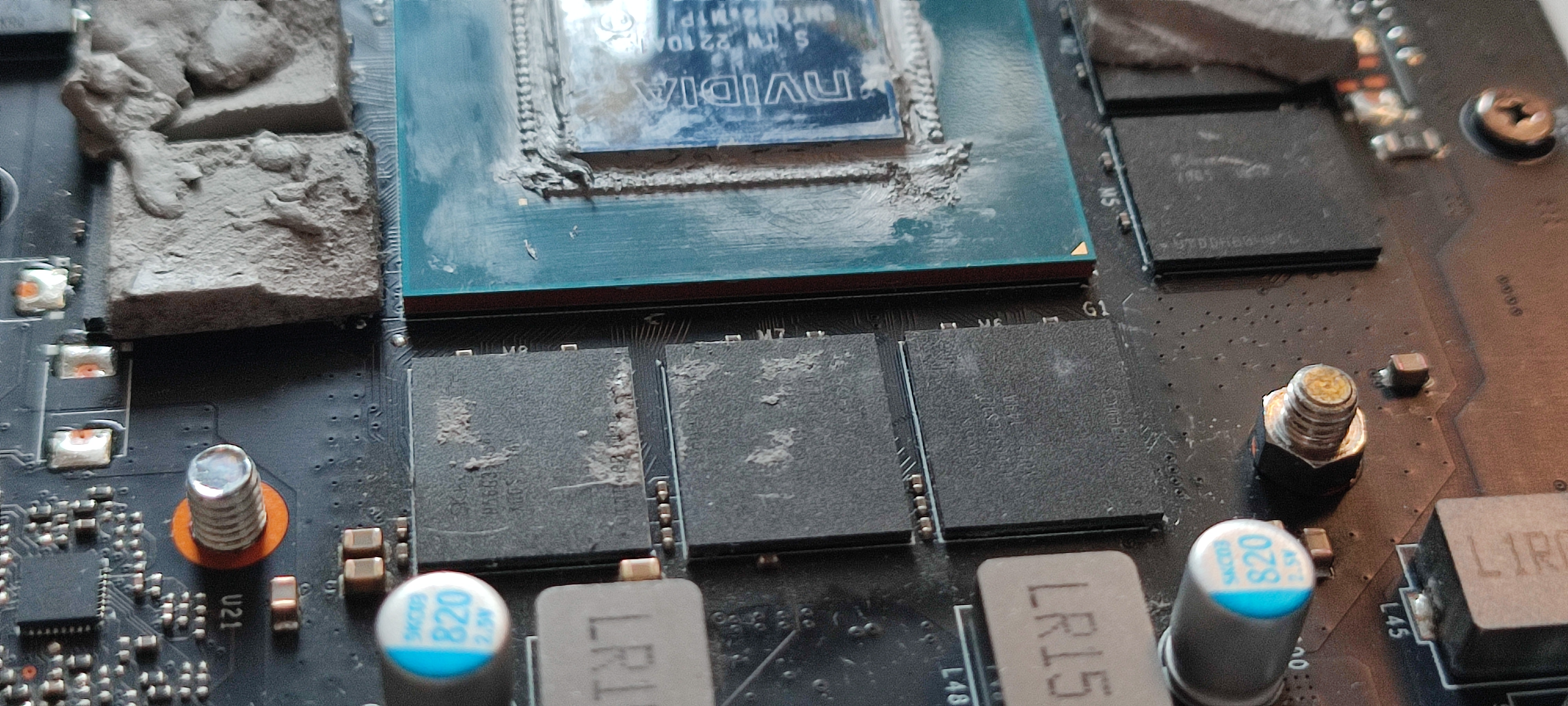 >>108284858well at least the contact pressure is really really good nowshame i might have just ripped every single pad under the memory and core chips by forgetting to buy some nuts or spacers to limit how far i could drive the screws