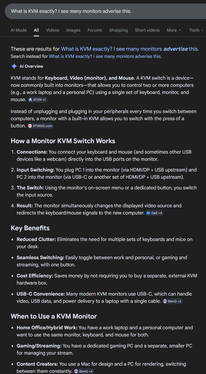What is KVM exactly? I see many monitors adverise this.