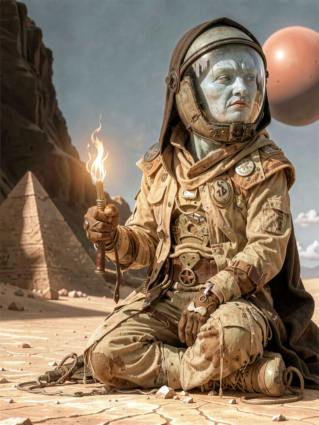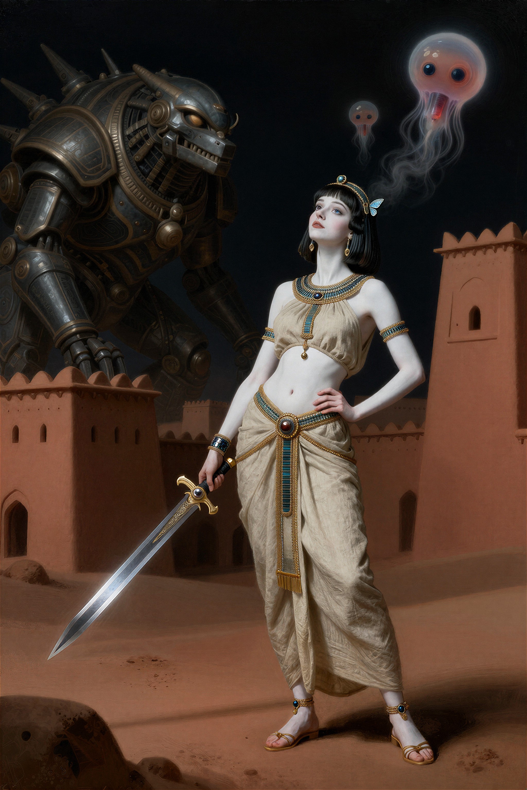 >battlesuit turns vaguely egyptian