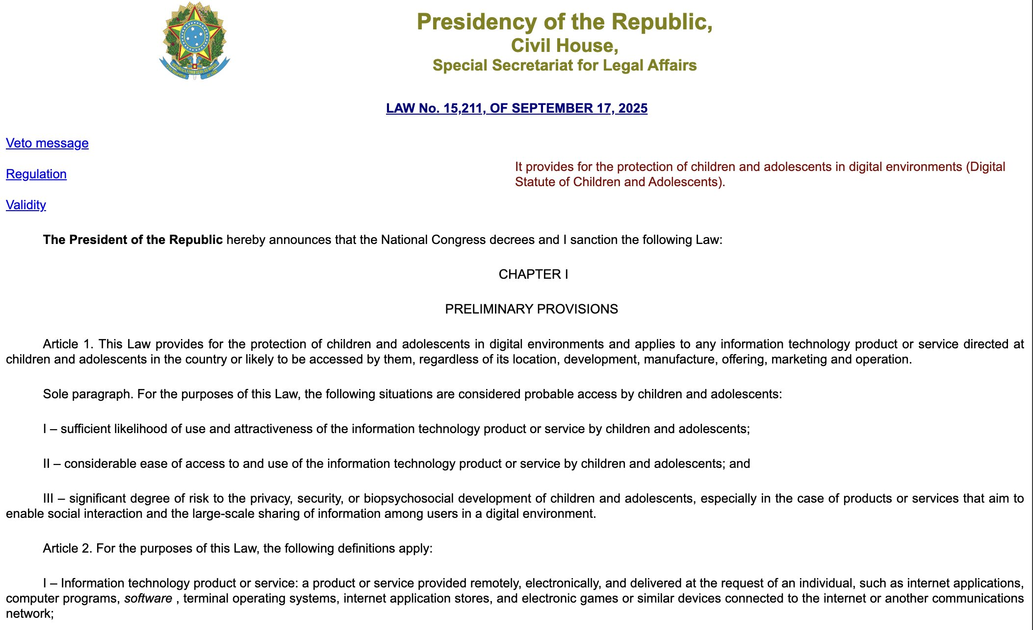 >>108294988>https://www.planalto.gov.br/ccivil_03/_ato2023-2026/2025/Lei/L15211.htm>III – rede social: aplicação de internet que tem como principal finalidade o compartilhamento e a disseminação, pelos usuários, de opiniões e informações veiculadas por textos ou arquivos de imagens, sonoros ou audiovisuais, em uma única plataforma, por meio de contas conectadas ou acessíveis de forma articulada, permitida a conexão entre usuários;I think we're cool, I haven't carefully read it yet completely me beady eyes hurt with these texts. We don't have a registration system here, there's no accounts, no users in away, just a open channel for retards to screech.