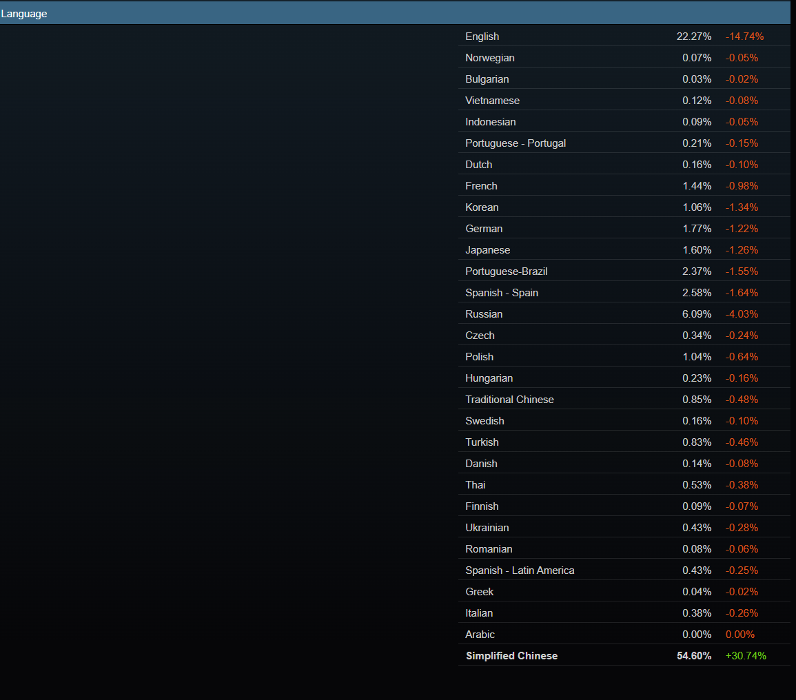 >>108290514No, the new results are due to an insane amount of Chinese accounts getting onto Steam; I believe they are 55% of steam users now.