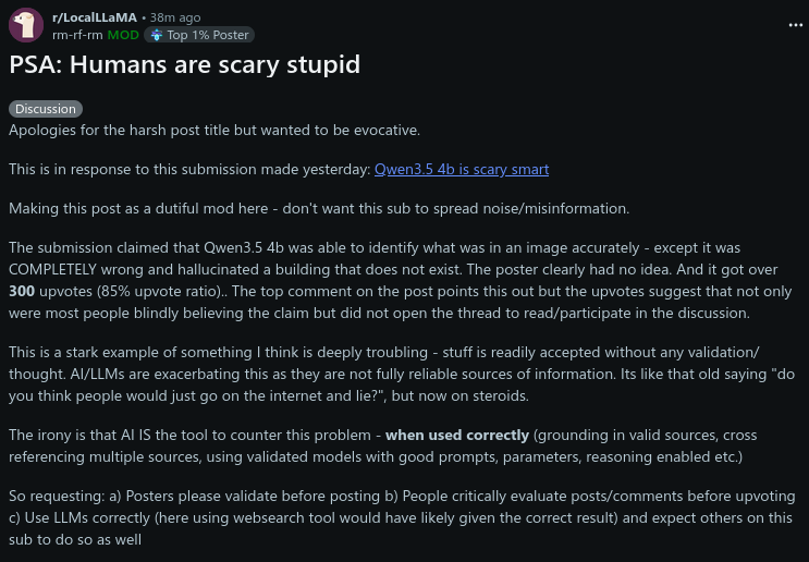 >>108295654>and people are just taking that into consideration.no people are just reflexively/kneejerk calling people in the industry shills. it's not a healthy skepticism.