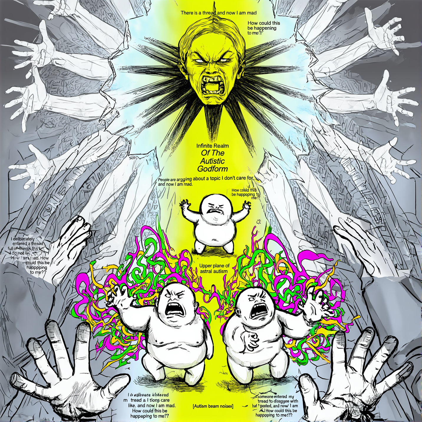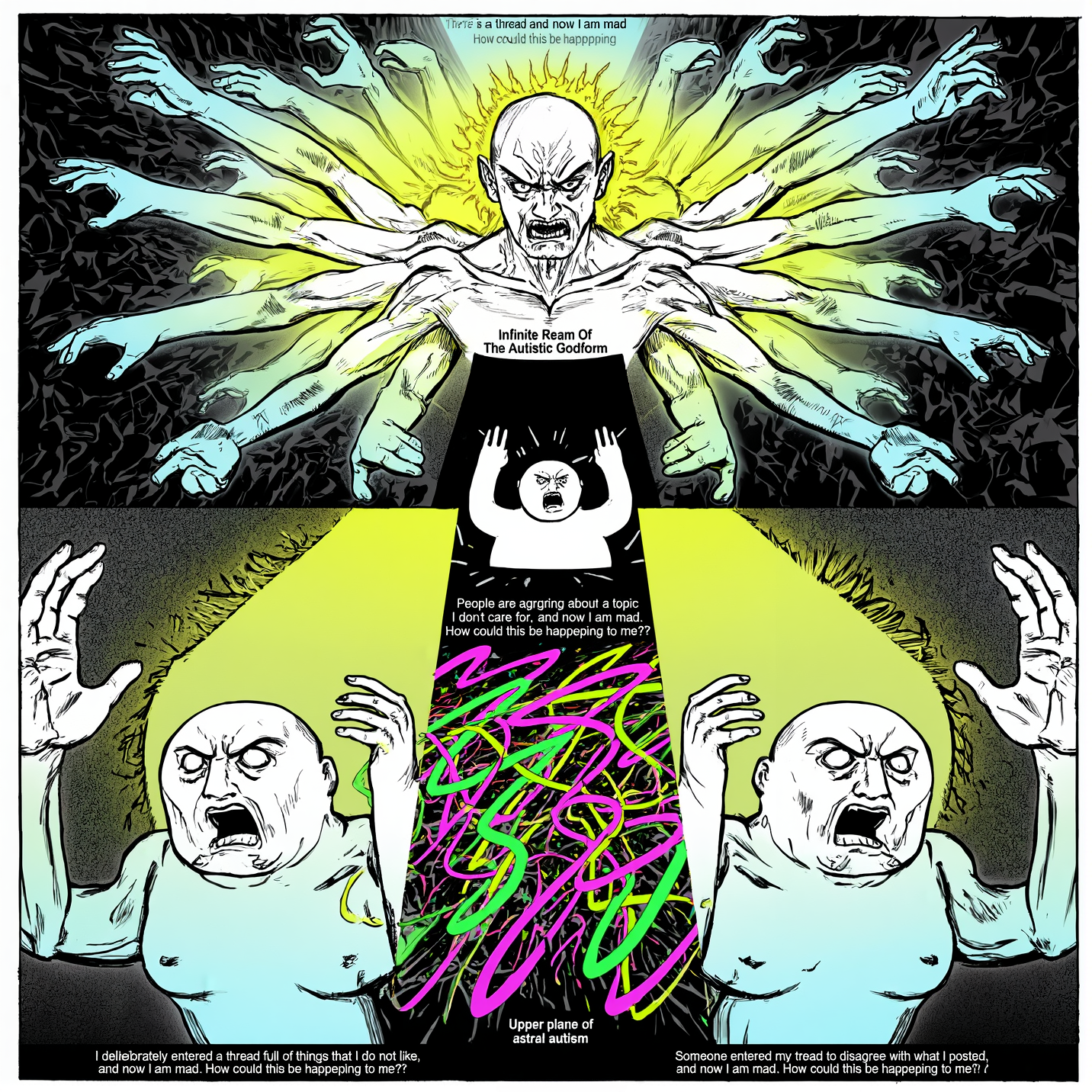 Oh, alright.It's 3 schizos all intertwining together