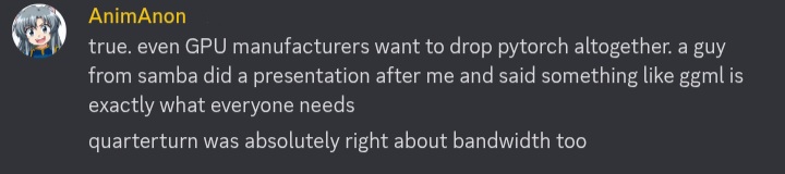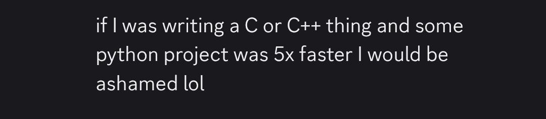 >>108301217python was good when hardware was cheap and abundant. we're in new reality now and people are finally starting to pay attention to efficiency. adversity breeds opportunity and i'm unironically hyped for the future of ai without bloat