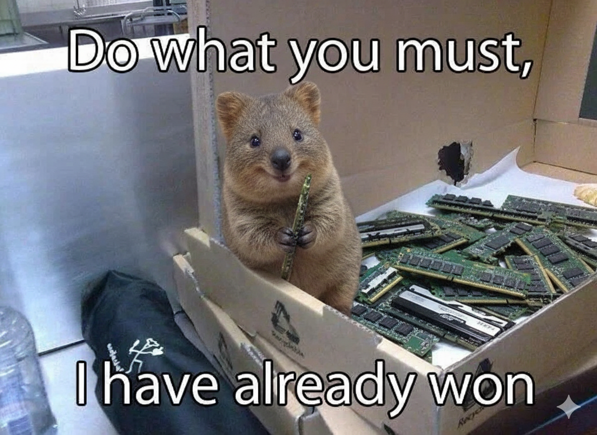 >>108298654>I paid a premium for new RAM but when the box arrived it was filled with quokka??