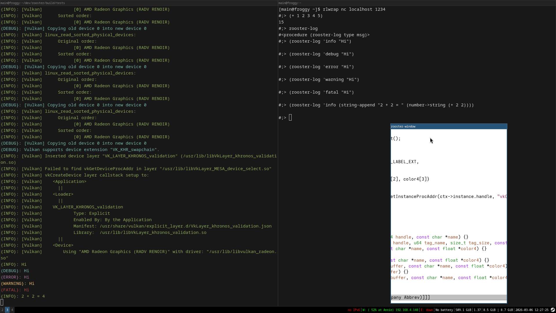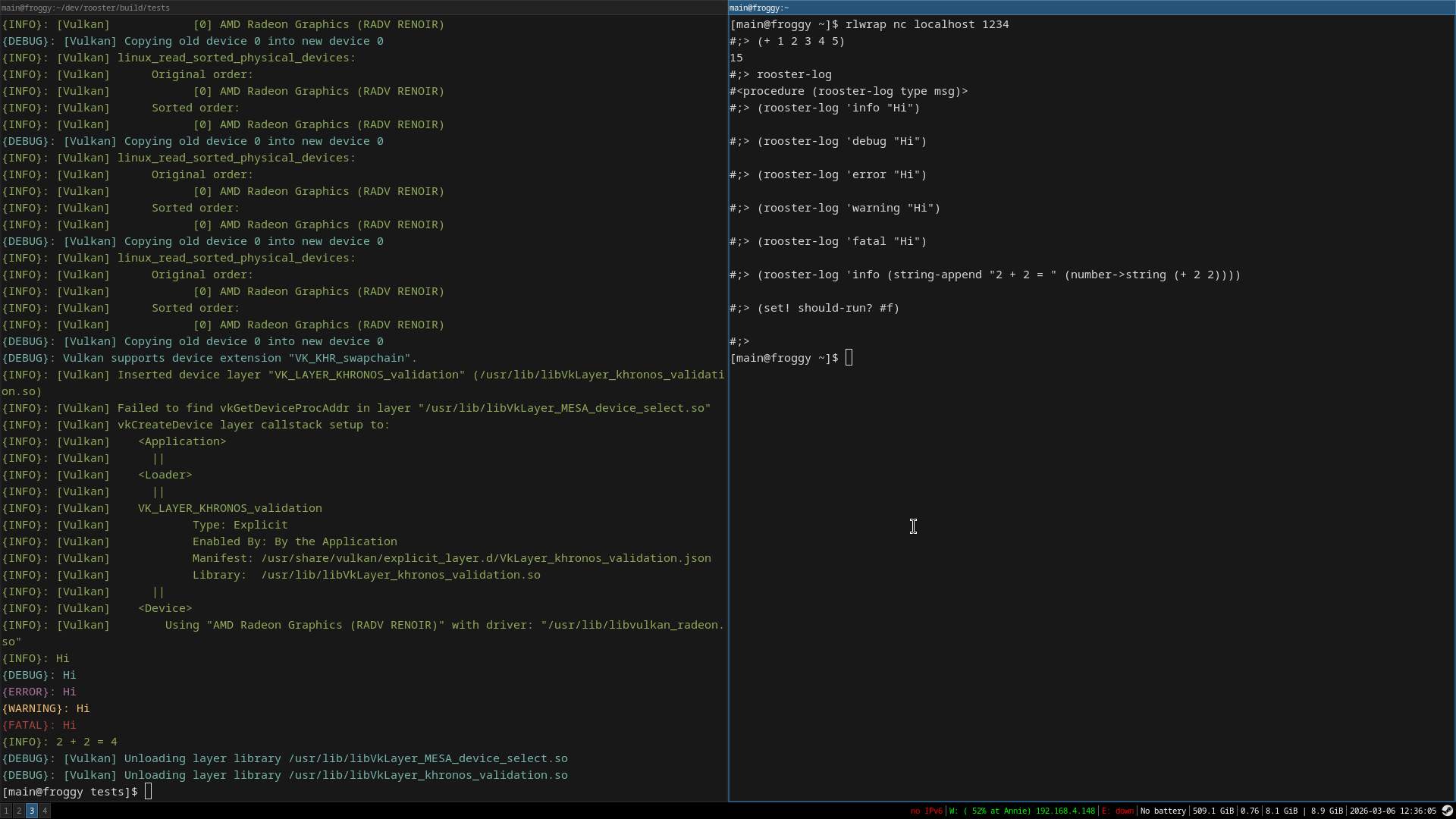 And this image shows that you can close the game with lisp. The console is free to use again on the left window pane.