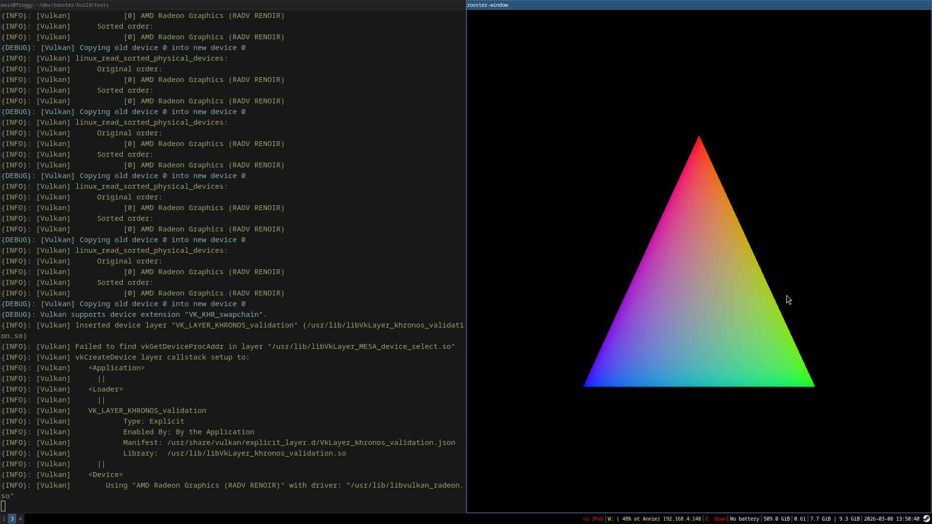 No swapchain/resizing so engine window is glitchy and changes when I move it or change worstations in my window manager.