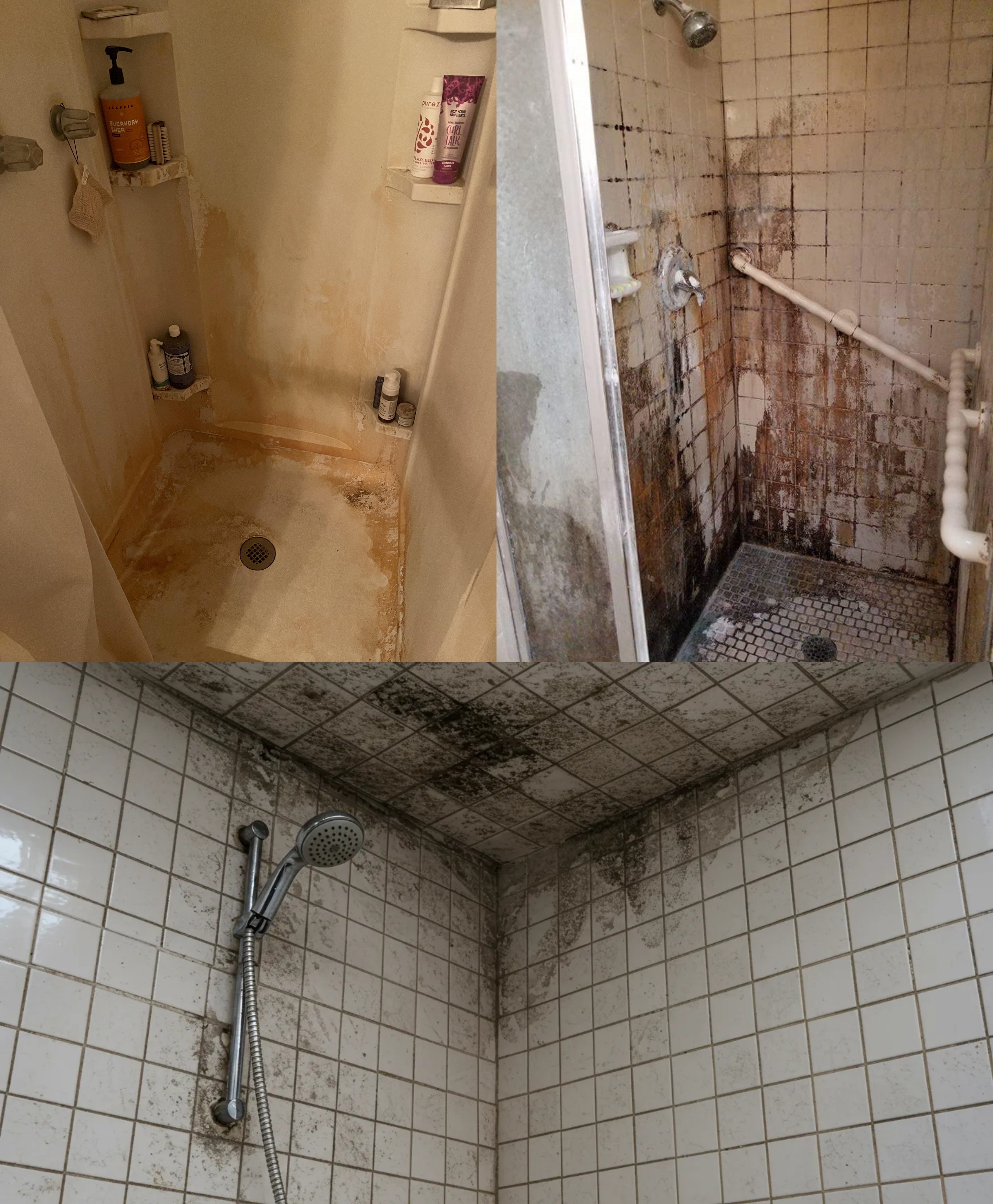 >>108314323none of those examples are from people not cleaning the shower, they're from improperly built showers and age.