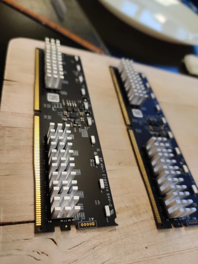 At the recommendation of an anon from the RAM OC thread from earlier this week, I upgraded my case so I could get a 360mm AIO to hopefully keep most of the heat from my CPU away from my RAM since I was getting instability above ~65C. That on its own wasn't enough (I think most of the heat is from my GPU at full load), so I added a side fan pointed directly at my RAM (just zip tied a 140mm fan to the side of the Hyte X50 Air's panel, had to add some rubber standoffs to prevent a really annoying high pitch noise from drawing fast air through the little holes) and setup a curve in fan control for the hottest DIMM so at 60C it's at full speed. This seems to keep my RAM from going above ~57C when I run furmark+TM5, but this is still higher than I would like, and higher than what many people report their RAM maxes out at. Are the Corsair Vengeance heatsinks really this shit? I'm tempted to deshroud them and do something like pic related to try to keep them under 50C.