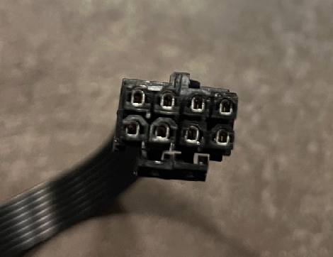 christ man what did you do? its really hard to tell because its so damaged but the first picture looks like a pcie 8 pin due to having 3 rounded pins on the bottom. the second pic looks like different wires and even more damage.