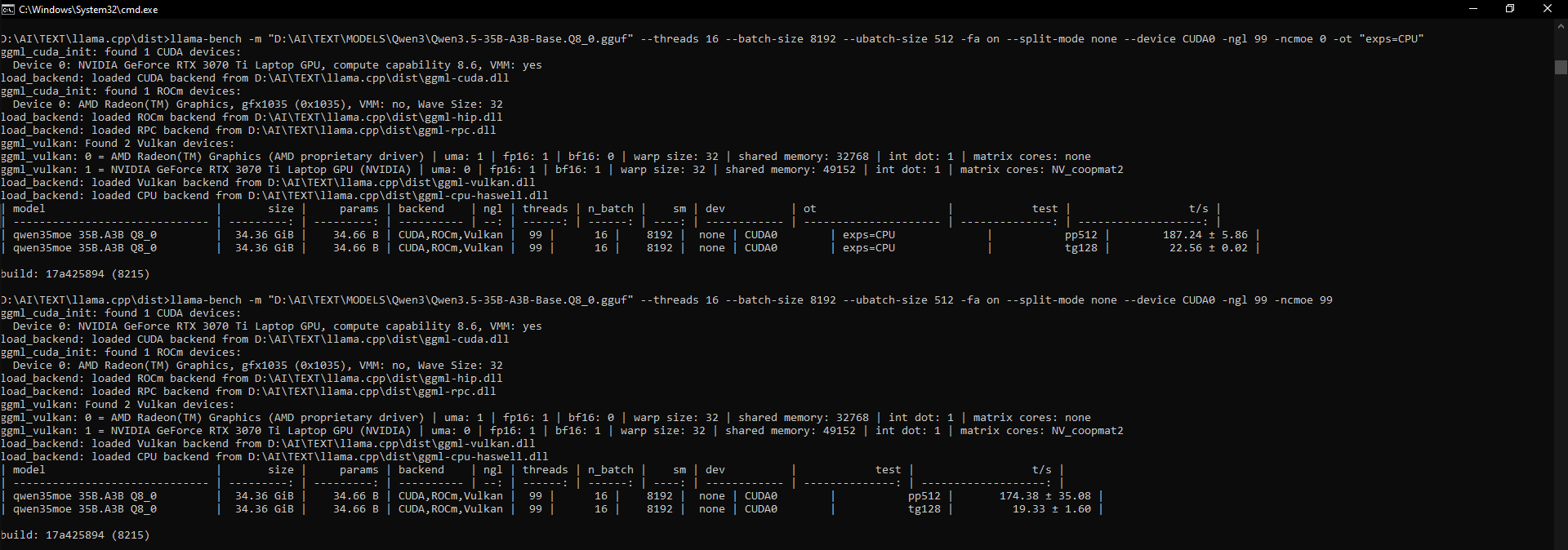 --Qwen3.5-35B performance discrepancy between -ot and -ncmoe modes: