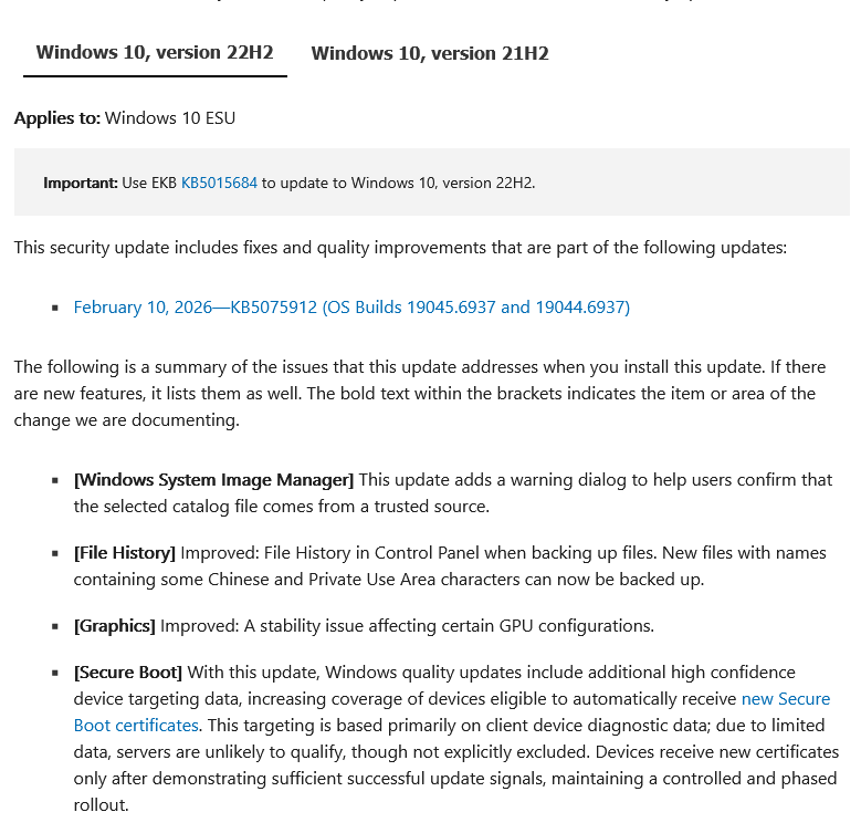>>108338414Something on 11 will do -something- stupid probably. The ESU 10 update will literally just be more security fixes, a fix for WinRE and more work on getting the secure boot keys ready to change.