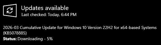 March ESU update done. Restarted twice, so I expect it's something to do with the new secure boot keys or whateverLove how quick these updates are.