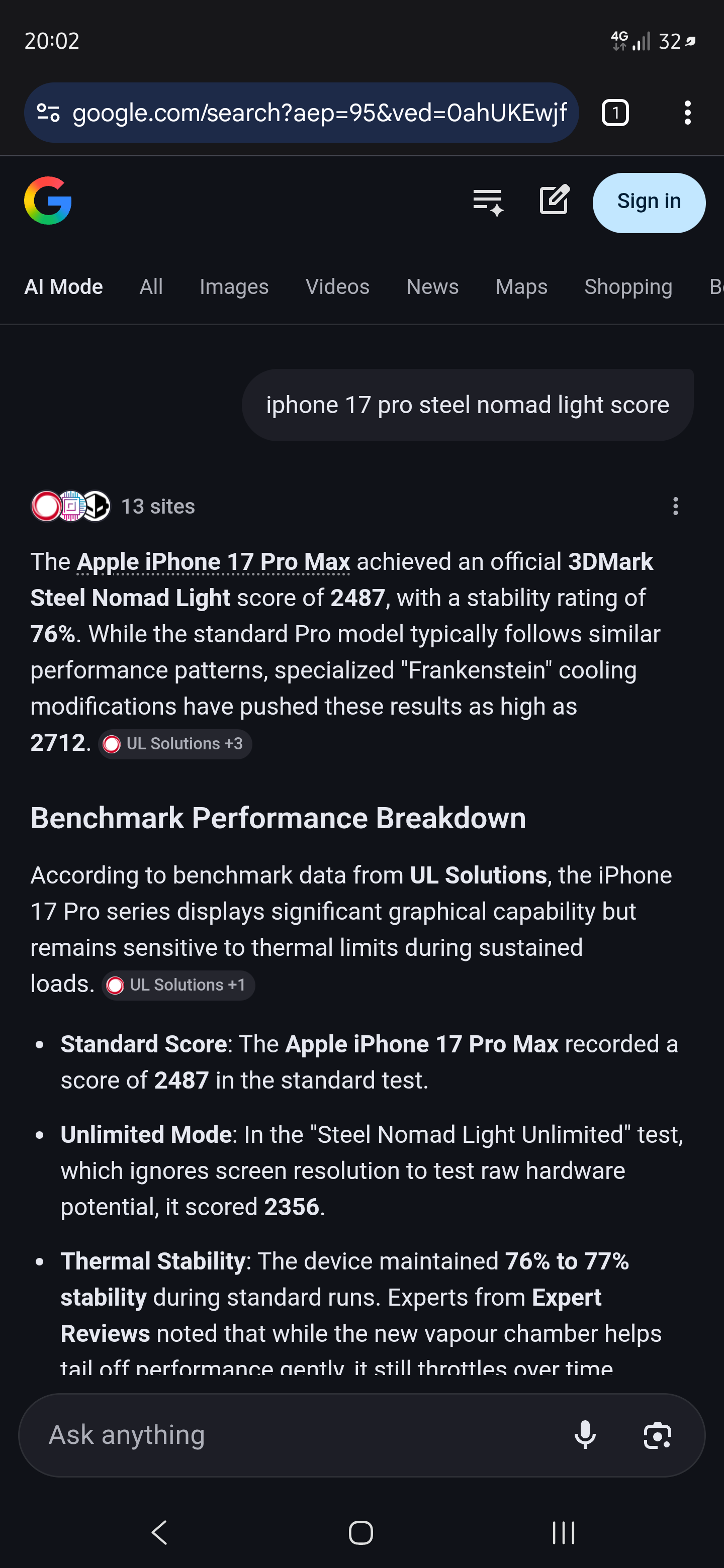 >>108325256Galaxy S26 Ultra Steel Nomad Light Stress Test