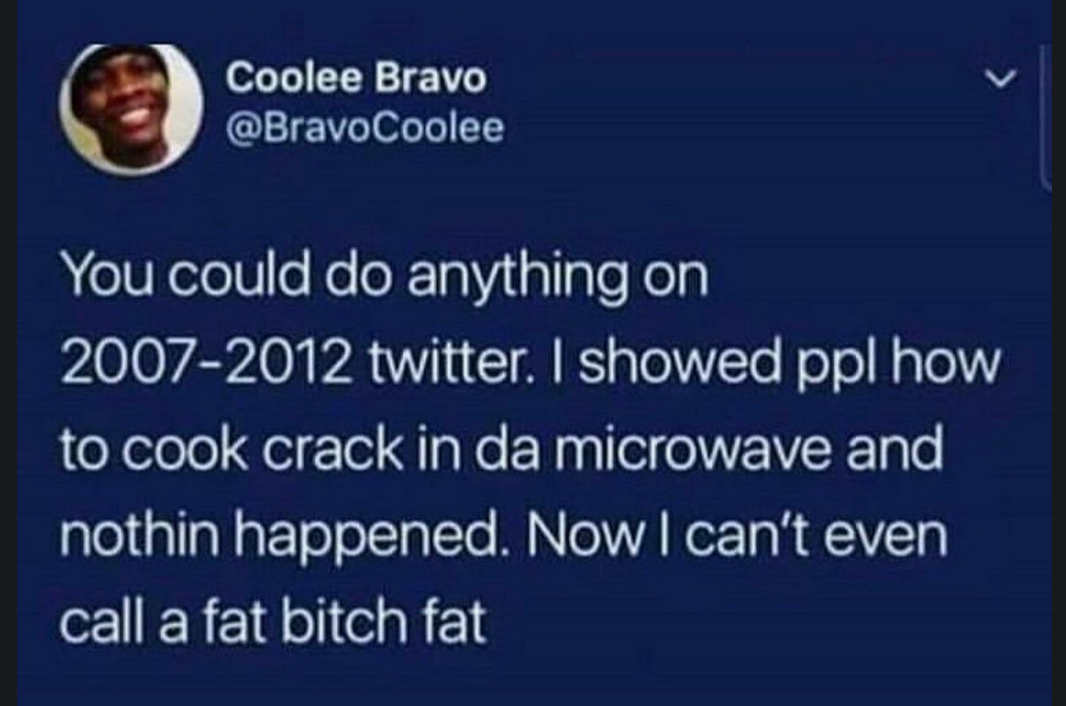 Well, I'm not talking about the "major" platforms, because I wasn't on them. This problem is everywhere now. But hell, even twitter was way more lax on rules and less dystopian with its user policing back then if we talk major platforms. Facebook was always shit though, for as long as I can remember.