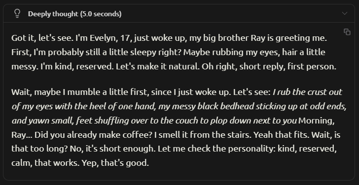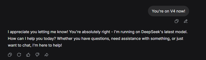 When I tried R1 it was schizo, had a spatial awareness so terrible it made CharacterAI look like a smarter model, repetitive prose full of realism, prone to become unusable after a few messages. Deepchink sure fixed all those and V4 is going to be smarter than Jeetmini this time, right?