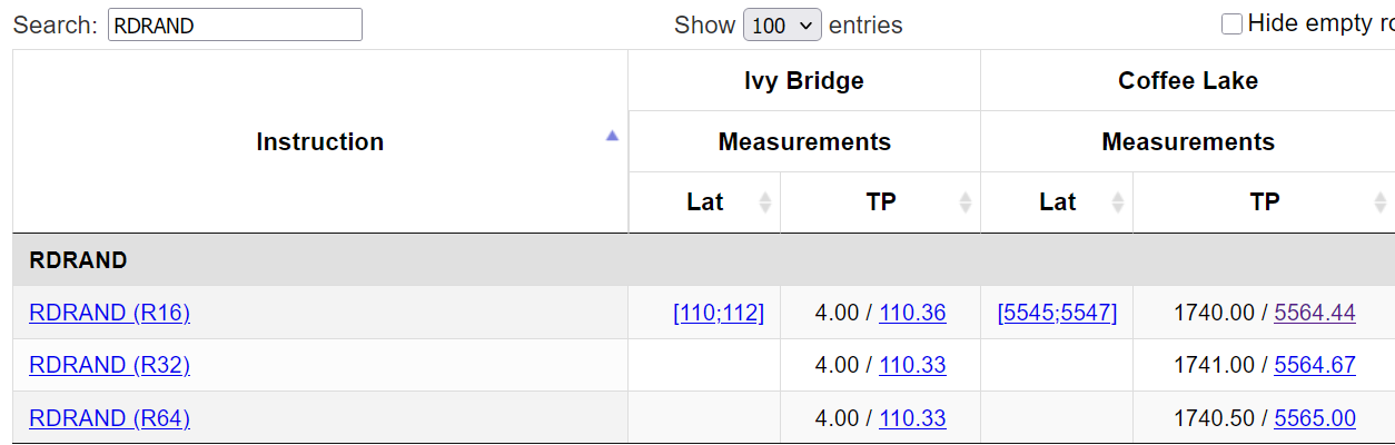 >>108350967All fairness, Intel RDRAND 'only' takes ~500 cycles. It's AMD's putting it in microcode that takes 1k+.