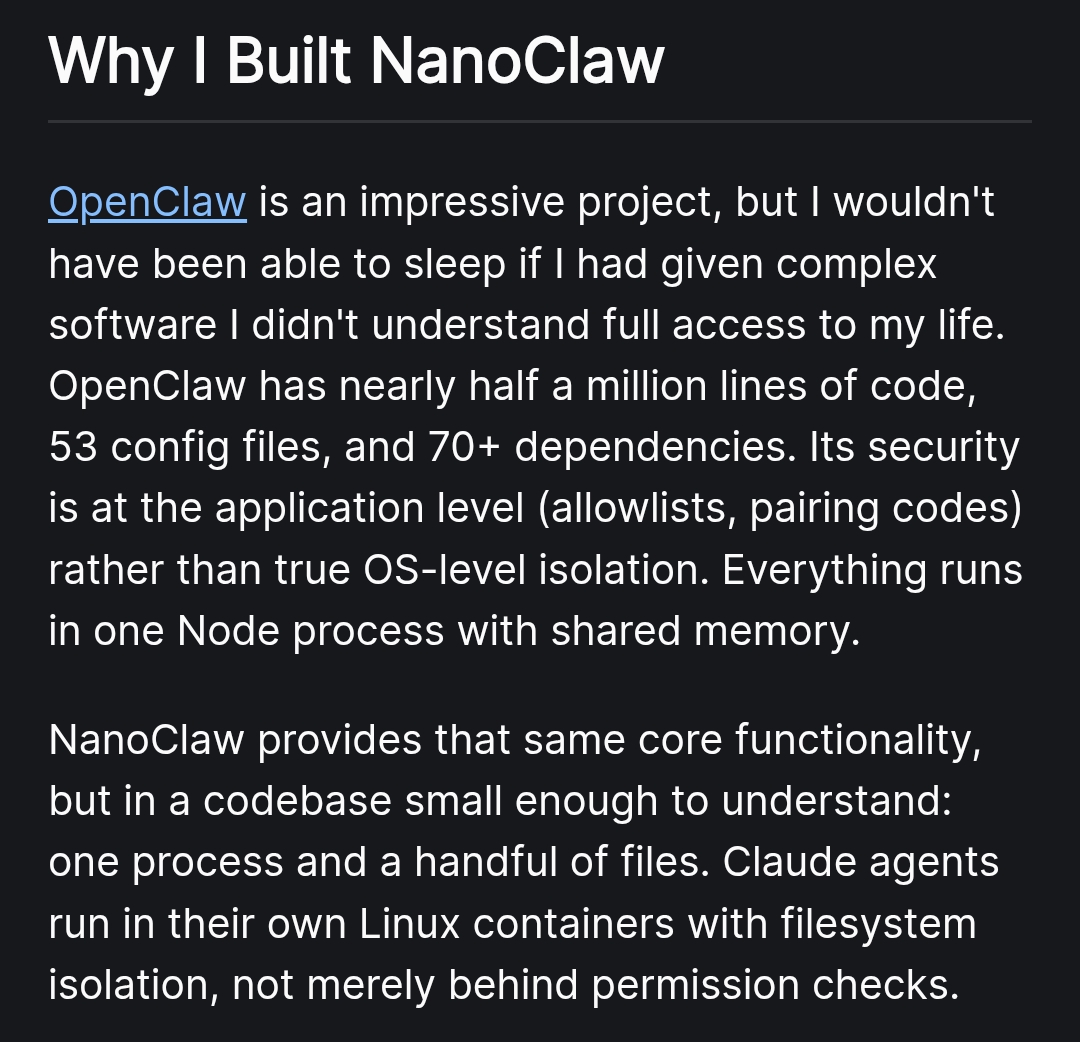 >just let MUH HECKIN AI AI AI BLACKBOX DO THE SETUP FOR YOU GOY JUST HAVE IT DO EVERYTHING FOR YOU GOY DONT ASK QUESTIONS GOYhttps://github.com/qwibitai/nanoclaw
