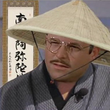 Hiroyuki's face looks like a Phoenician mask.