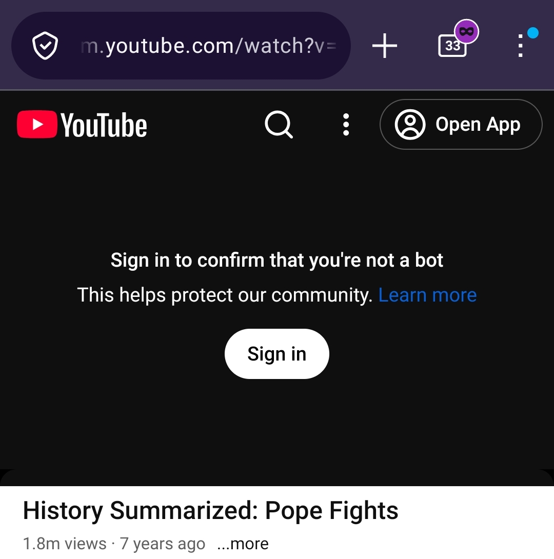 >>108359851Nah, that's just Google being a bunch of assholes.I'm like the one person on the planet who uses Edge, and Youtube works great when I'm logged in. But if I open an InPrivate window in the exact same browser and on the exact same computer, it suddenly demands that I log in to confirm I'm not a bot. I can even watch a Youtube video in a regular browser window at the same time, so it's neither user agent or IP based. They just really really want you to log in.