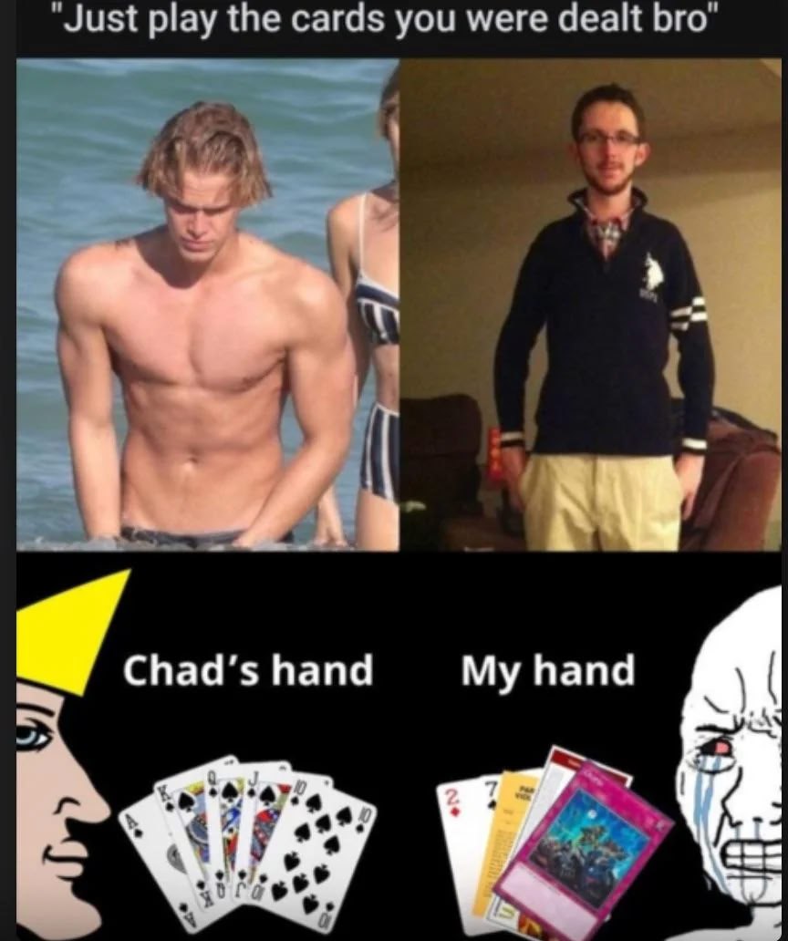 >>108362282TRVTHNOVAretards that fell for the blackpill meme take picrel as gospel, in reality there are some external factors that influence your life in a great way and it's stupid to deny or dismiss it, however it's pointless to hyperfixate on things you have zero impact on, focus on what you can change in yourself both externally and internallynot to mention how your ancestors would beat the shit out of you and call you massive pussy if you told them that you are """"depressed""" (or whatever you call that gay shit) while having a roof over your head, king-tier food and relative security if you live in a first world countrynever kill yourself bros