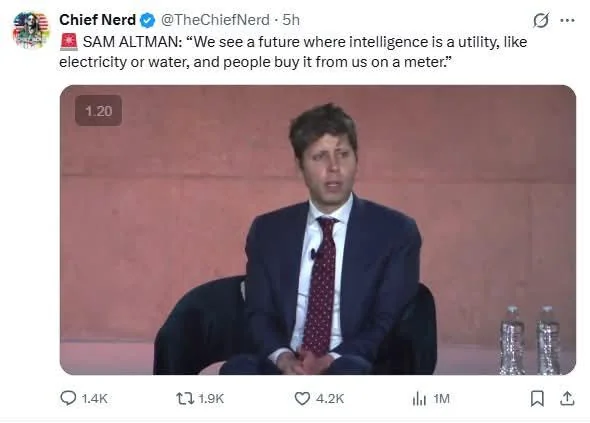 We see a future where intelligence is a utility, like electricity or water, and people buy it from us on a meterhttps://www.reddit.com/r/singularity/comments/1rro8ej/sam_altman_we_see_a_future_where_intelligence_is/