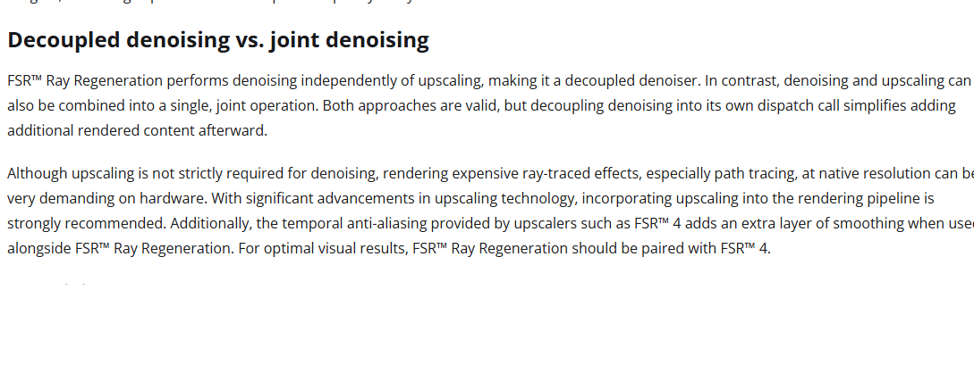 FSR's Ray Reconstruction would allow users to seamlesssly combine RR + the newest upscaler model in the future.