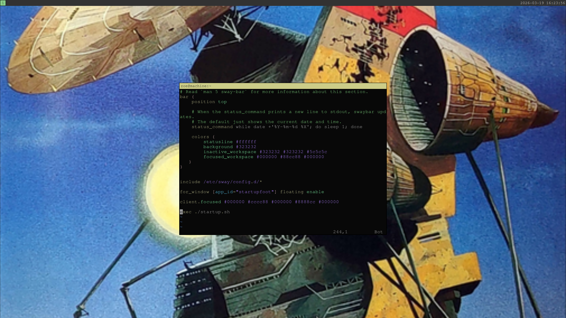 arch with sway. just in a virtualbox. still learning.