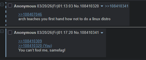 >>108407019>ran away when i saw it was Arch basedwhy? scared you might learn something?