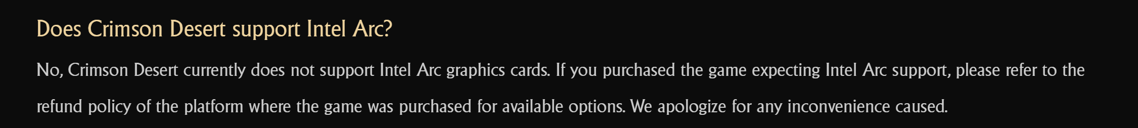 >>108411421Intel drivers don't implement certain parts of the DirectX specification because their GPU doesn't support those features. What usually happens is a month down the line you get a driver update that hacks in support, and by support I mean they accept the commands so the program doesn't crash but they either emulate the functionality in software or ignore it entirely so you end up with games that look bad/broken but at least run.