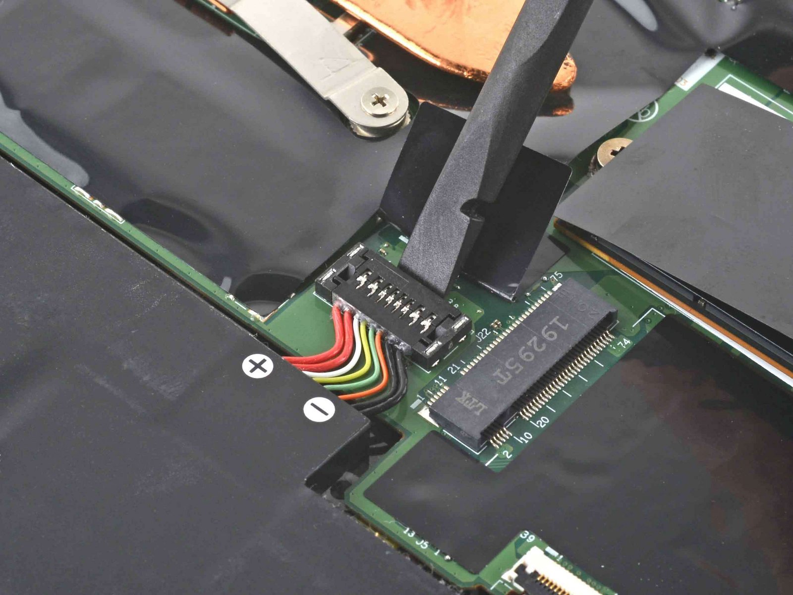 I can't open up the laptop because it's on warranty and considering the decent temperatures, the repair folks did a decent job preparing it for work.